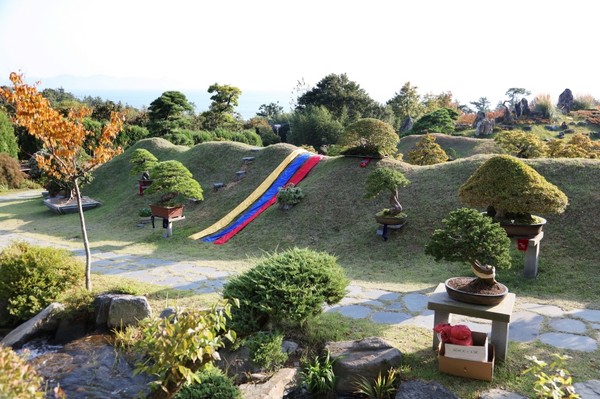 산책로를 돌다 보면 정원 곳곳에 전시된 500여 개의 분재는 소나무, 모과나무, 연산홍 등 다양한 여러 나무들이 수십 년, 세월의 정성이 느껴지며, 한 그루 한 그루의 세심한 손길로 자연의 예술작품을 보는 듯 했습니다.