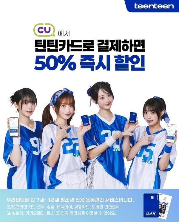 우리은행은 청소년 고객을 위한 이벤트도 꾸준히 진행 중입니다. 지난 3월에는 브랜드 모델 장원영 포토카드 이벤트를 진행했으며, 최근 6월에는 인기 밴드 QWER와 협업한 '우리틴틴 QWER 에디션' 카드를 출시해, 새로운 고객들에게는 특별한 굿즈 이벤트도 제공 중입니다. 앞으로도 청소년들의 실생활에 도움이 되는 이벤트가 준비된다고 합니다.