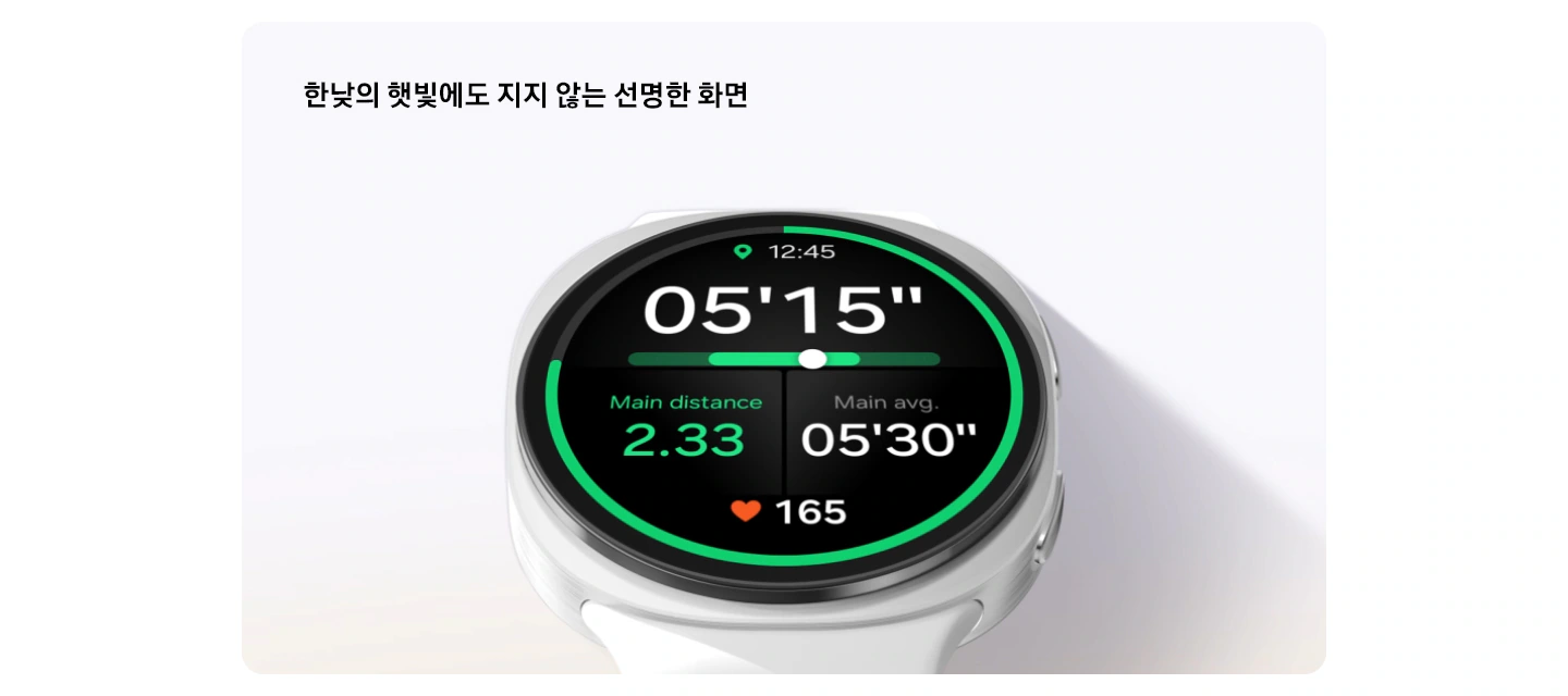 워치 내부에는 3nm 프로세서가 탑재되어 있습니다. 이를 통해 처리 속도는 빨라지고 전력 효율도 향상되어 다양한 기능을 매끄럽게 사용할 수 있습니다. 디스플레이는 최대 3,000니트의 밝기를 지원해 야외 한낮에도 화면을 선명하게 확인할 수 있습니다. 운동 데이터 확인이나 메시지 수신 시에도 답답함 없이 확인할 수 있다는 점이 큰 장점입니다.