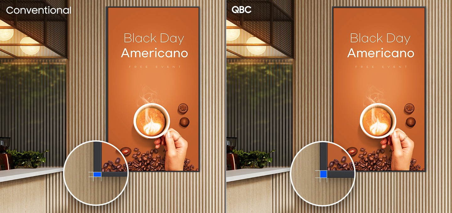 QBC는 다이내믹 크리스탈 컬러 기술을 통해 10억 개 이상의 색상을 표현하며, 실제에 가까운 순도 높은 색감을 제공합니다. 생생하고 몰입감 넘치는 화질은 고객의 시선을 사로잡고, 브랜드 이미지를 정확하게 전달할 수 있도록 돕습니다.