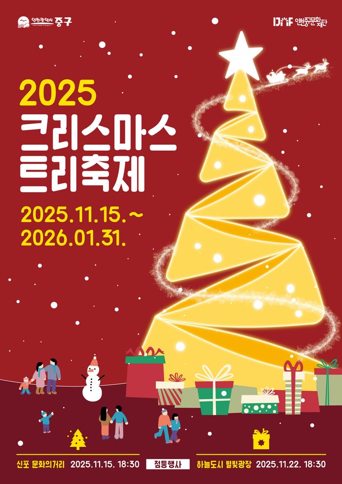 '2025 크리스마스트리 축제' 자세한 행사 일정, 참여 정보는 인천중구문화재단 홈페이지를 통해 확인할 수 있으며, 문의는 재단 담당 부서로 가능합니다.