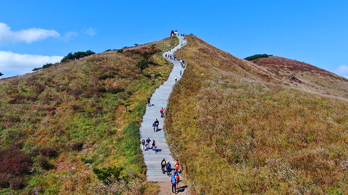 최근 황매산 일부 구간은 집중호우로 일부 산책로가 통제되고 있습니다. 그러나 정상주차장에서 억새 군락지를 지나 정상까지 오르는 루트는 개방되어 있어, 방문객들은 이 길을 따라 억새의 장관을 충분히 즐길 수 있습니다. 코스 자체가 완만하게 잘 정비되어 잇어 등산 초보자도 부담없이 산행을 즐길 수 있습니다.