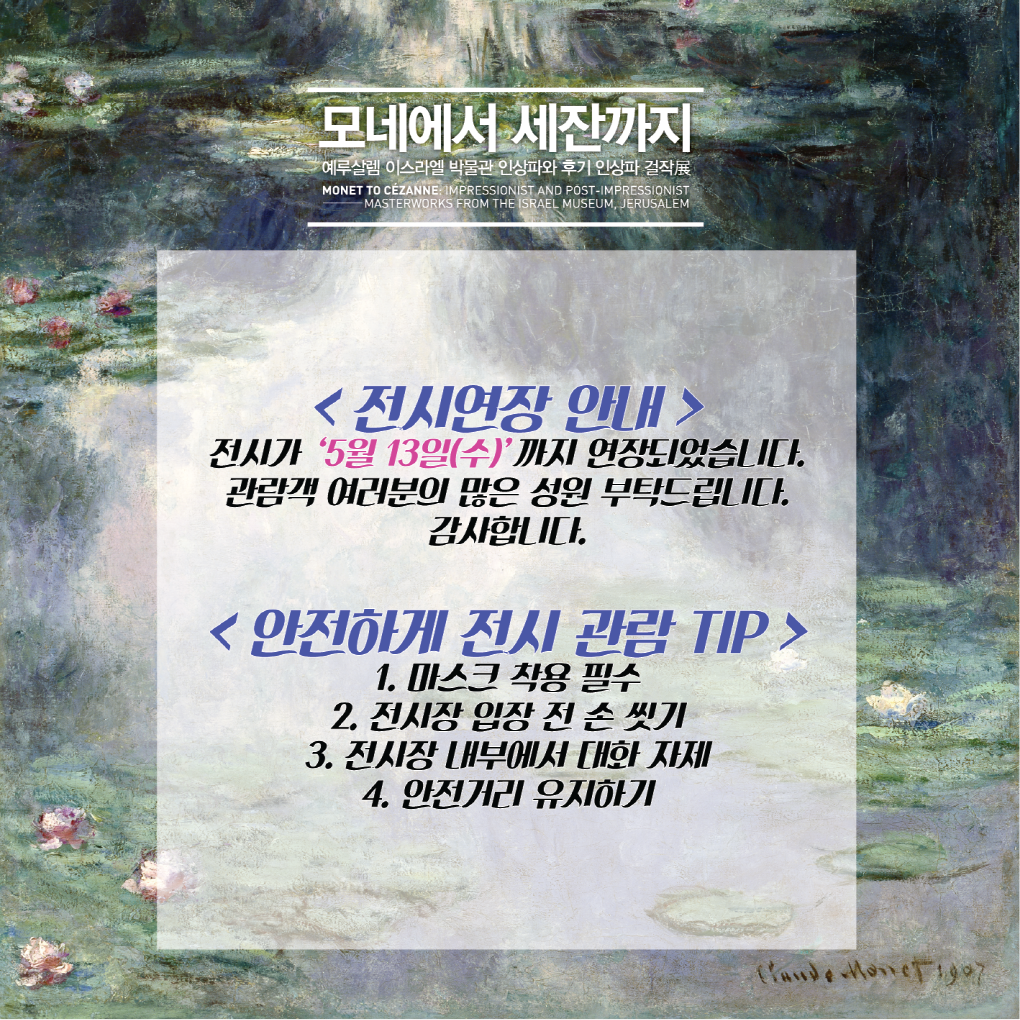 '인상파, 찬란한 순간들: 모네, 르누아르, 반 고흐 그리고 세잔' 전시는 세계적 미술기관인 예루살렘 이스라엘 박물관(IMJ)의 소장품을 국내에서 직접 감상할 수 있는 드문 기회로 주목받고 있습니다. 오는 12월 19일부터 내년 5월 31일까지 서울 노원아트뮤지엄에서 열립니다. 이번 전시는 노원문화재단, KBS미디어, 예루살렘 이스라엘 박물관이 공동주최하고, 노원문화재단과 이엔에이파트너스가 주관합니다.