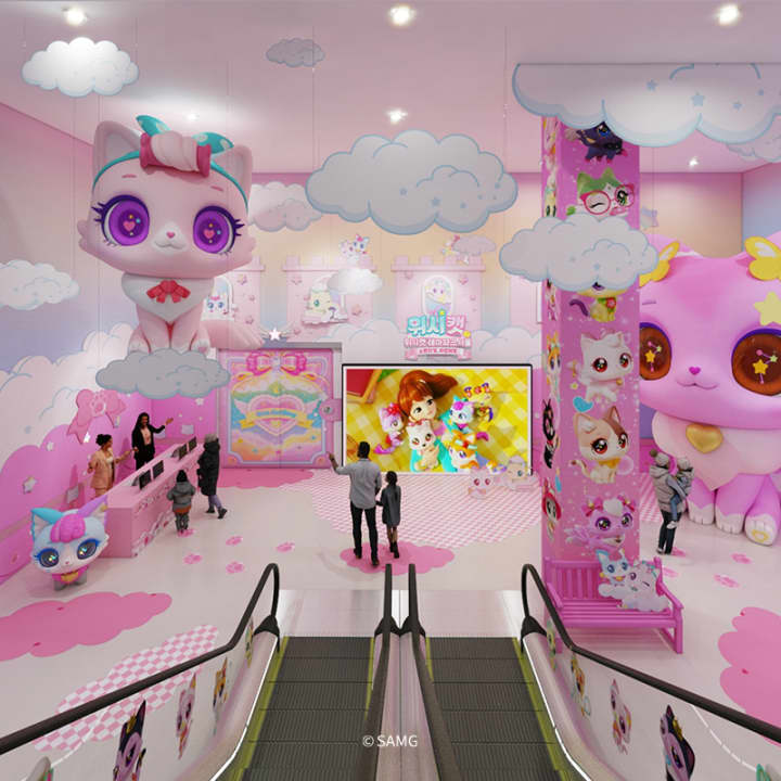 공간 구성은 단순히 포토존만 모여 있는 전시가 아니라, 스토리 라인을 따라 걸으며 체험이 이어지는 "몰입형 판타지 체험"에 가깝습니다. 특히 위시캣 세계관을 아는 아이들에게는 애니메이션 속 배경과 소품들이 실물처럼 재현된 플레이존이라는 점에서, 좋아하던 캐릭터 속으로 들어간 듯한 몰입감을 주도록 기획되어 있습니다.