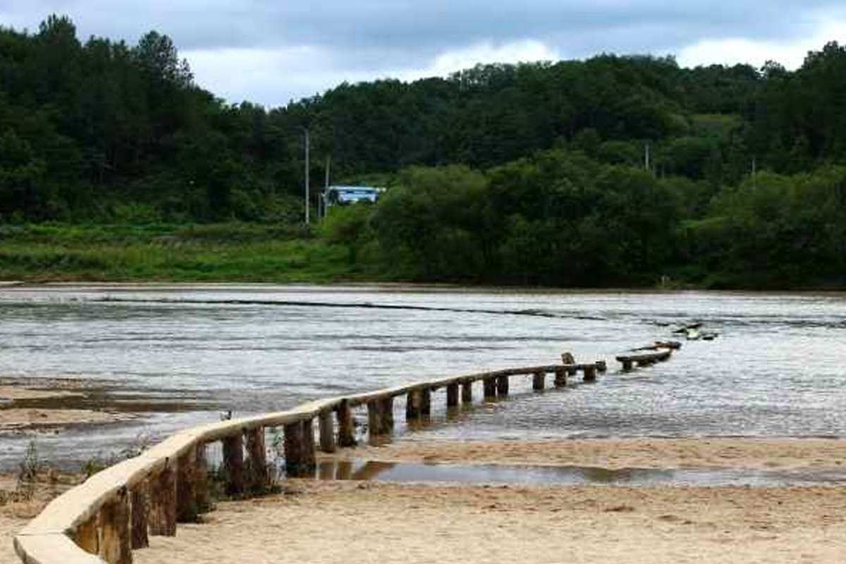 백사장과 강, 나무다리가 어우러진 풍경은 계절과 시간에 따라 다른 분위기를 보여주며 사진 촬영지로도 알려져 있습니다.